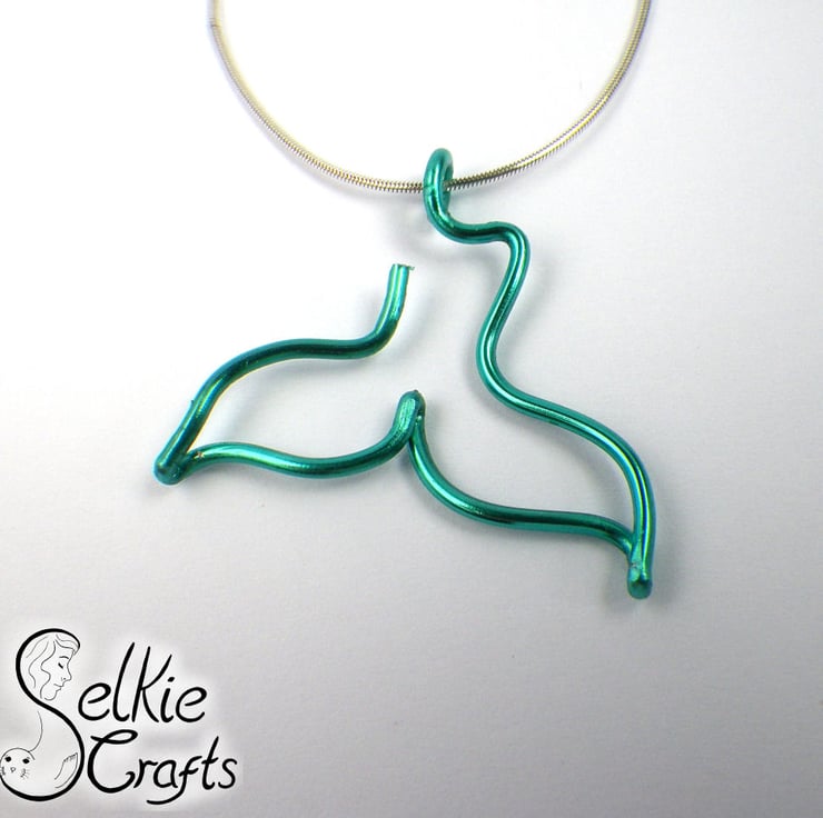 This handmade wire whale tail necklace is a beautiful piece with character.