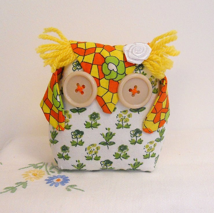 I LOVE my little Owl ! ... I dip into my vintage fabric collection to craft these little cuties - all handmade by myself , WittyDawn.