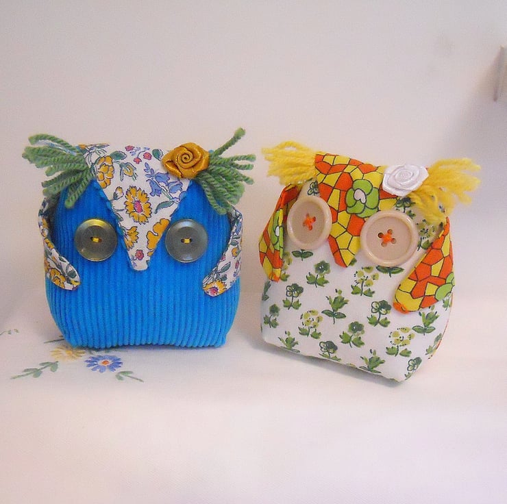 My Owls are made with vintage fabric -
