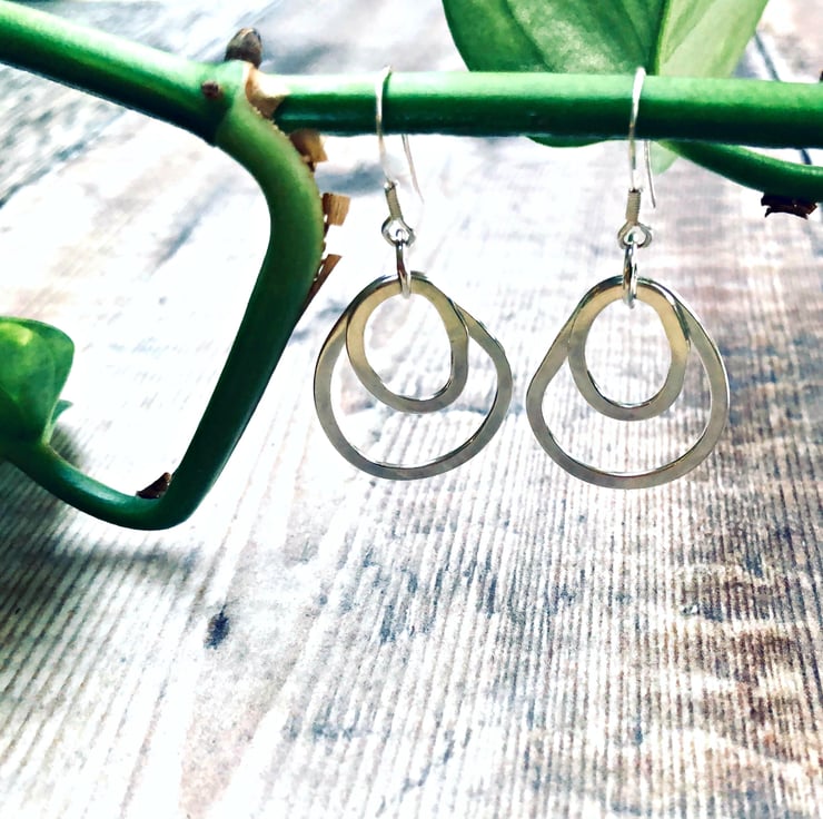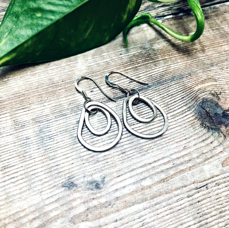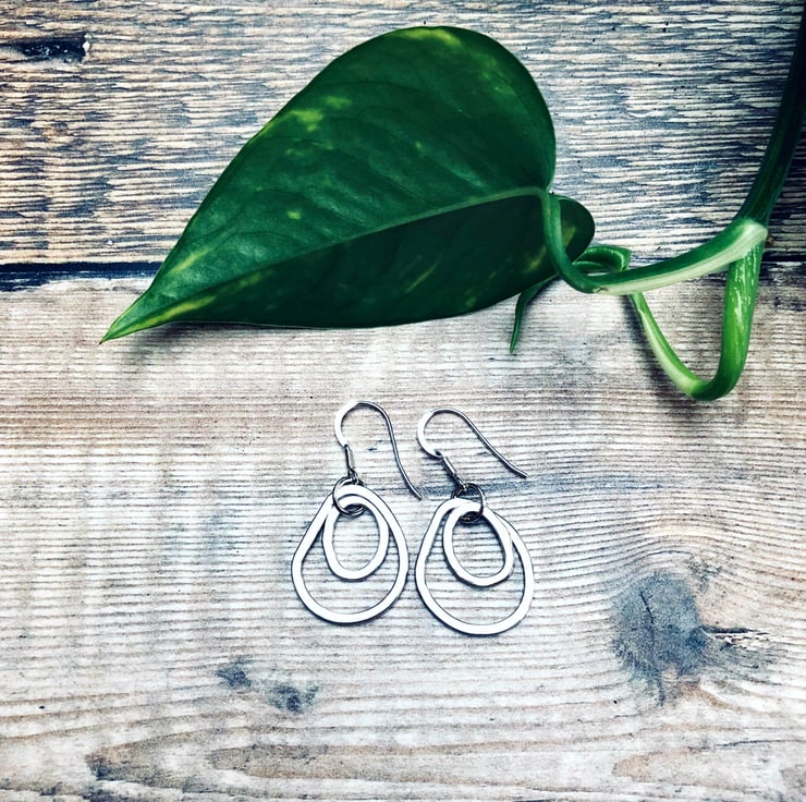 Each set is handmade by me, and each will look slightly different to the next, due to random way that they are made, but to give you an idea of size, the larger hoop will be approx 22mm at it's widest point.