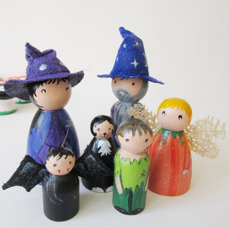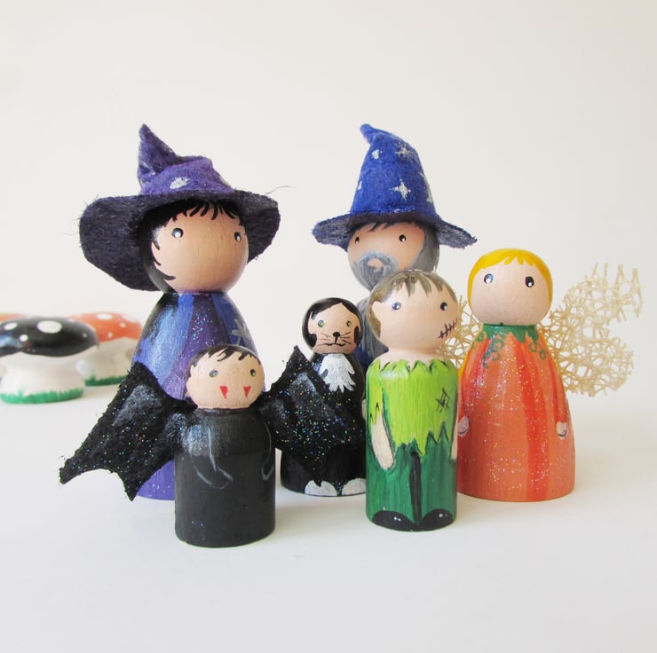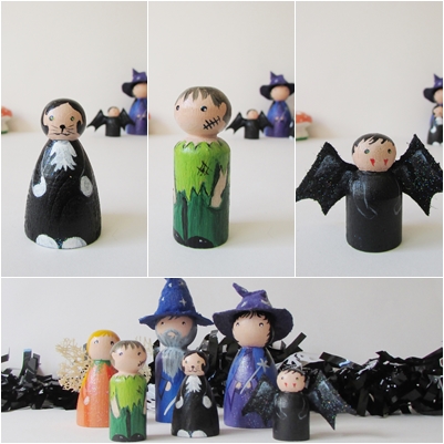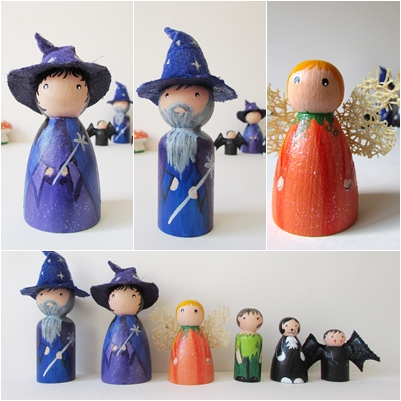Collectible peg dolls, a great accompaniment to your Halloween Shelf.