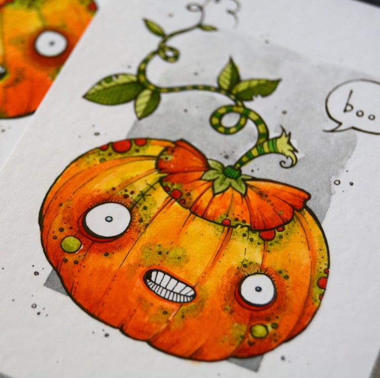 a sweet smiling zombie pumpkin, perfect for halloween... or any time of the year, really! :)