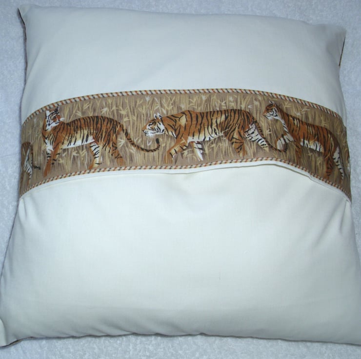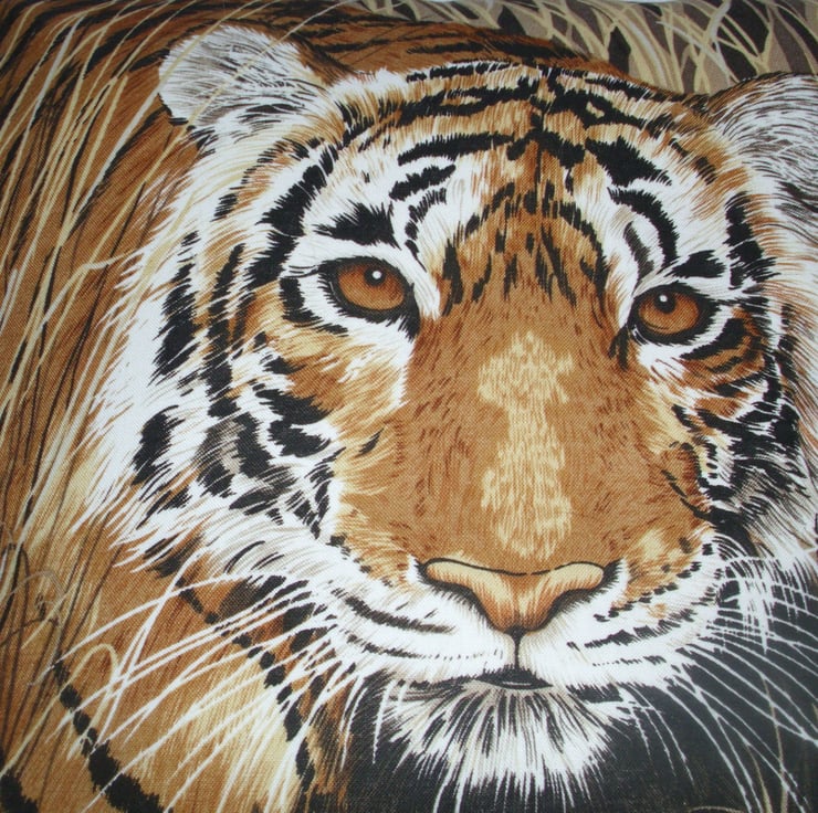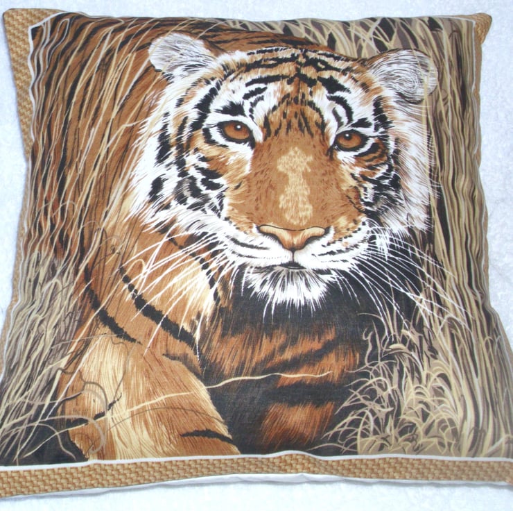 On Safari magnificent Tiger cushion , regal Tiger prowling through the long grass.