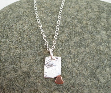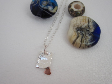 Reticulated Silver finish with copper heart detail and polished chain.