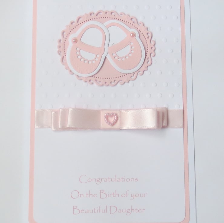 Lovely handcrafted New Baby Girl Card made with care and attention to detail