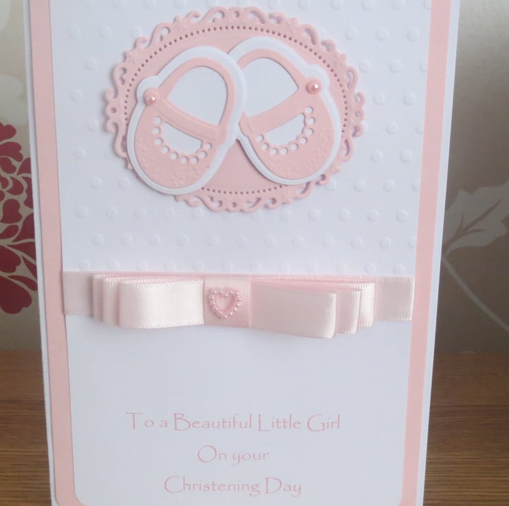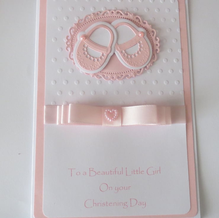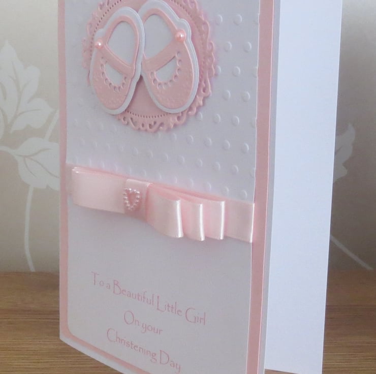 Lovely card for a Girls Christening made from crisp white 300gsm card