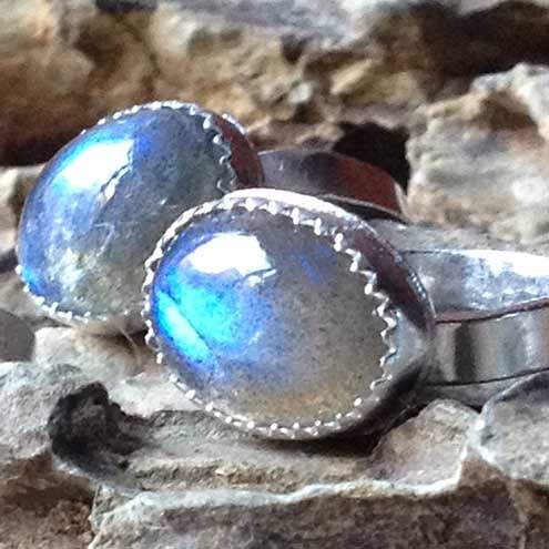 Lovely sky blue flash on these Norwegian blue Labradorite stones set in pretty serrated bezels. THIS LISTING IS FOR 1 RING ONLY