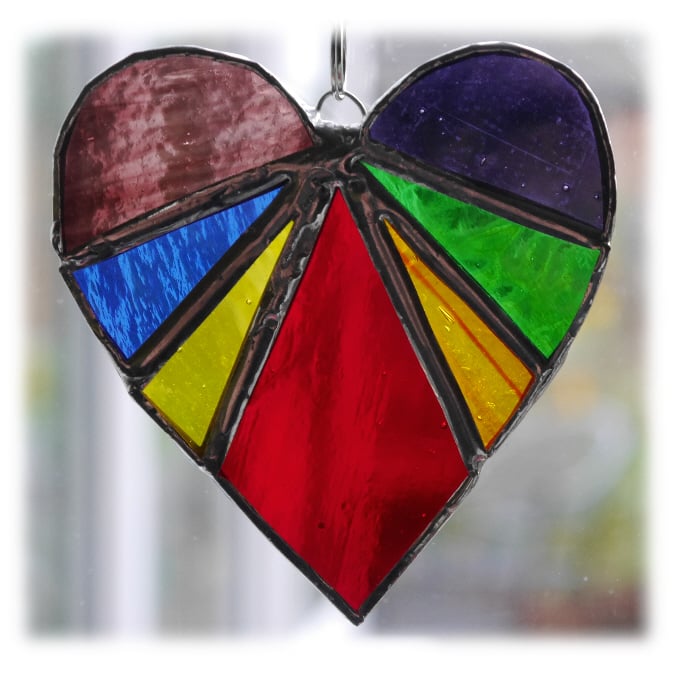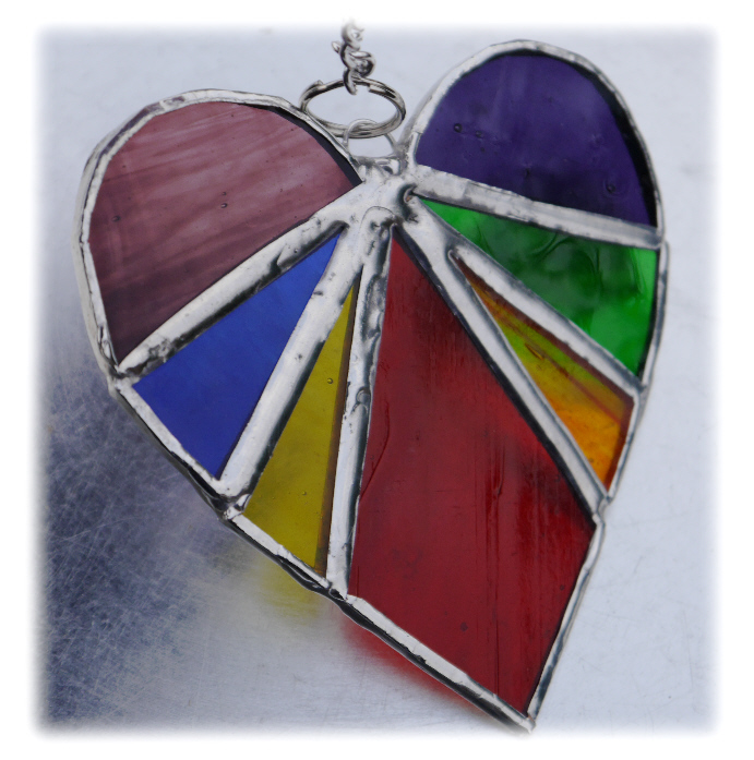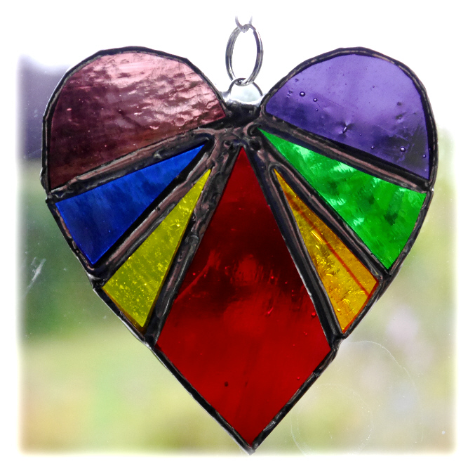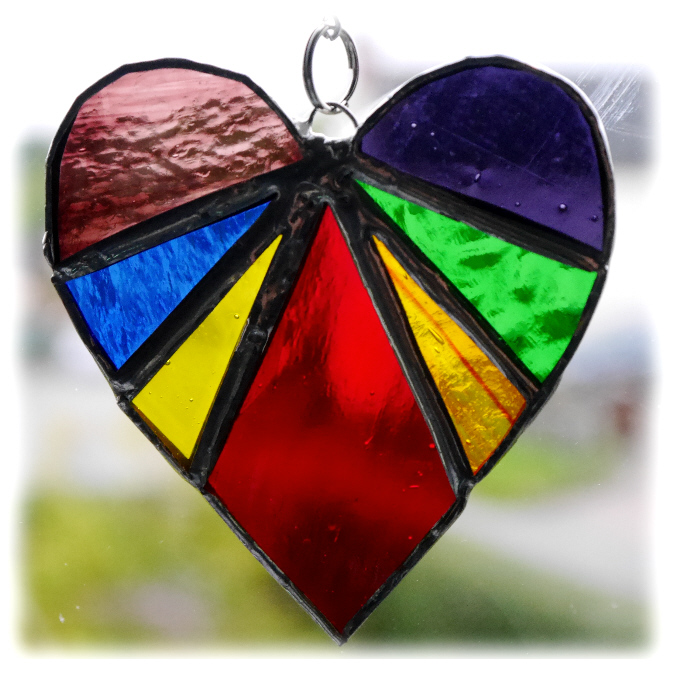 The heart is made from 7 beautiful shades and textures of glass, all 7 colours of the rainbow.