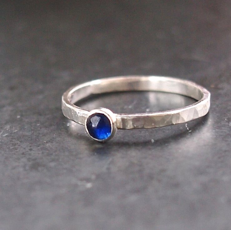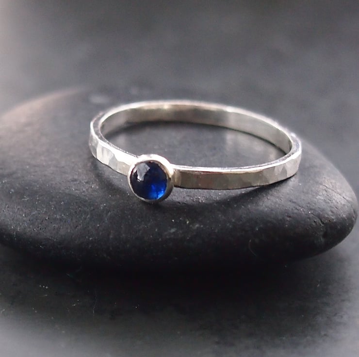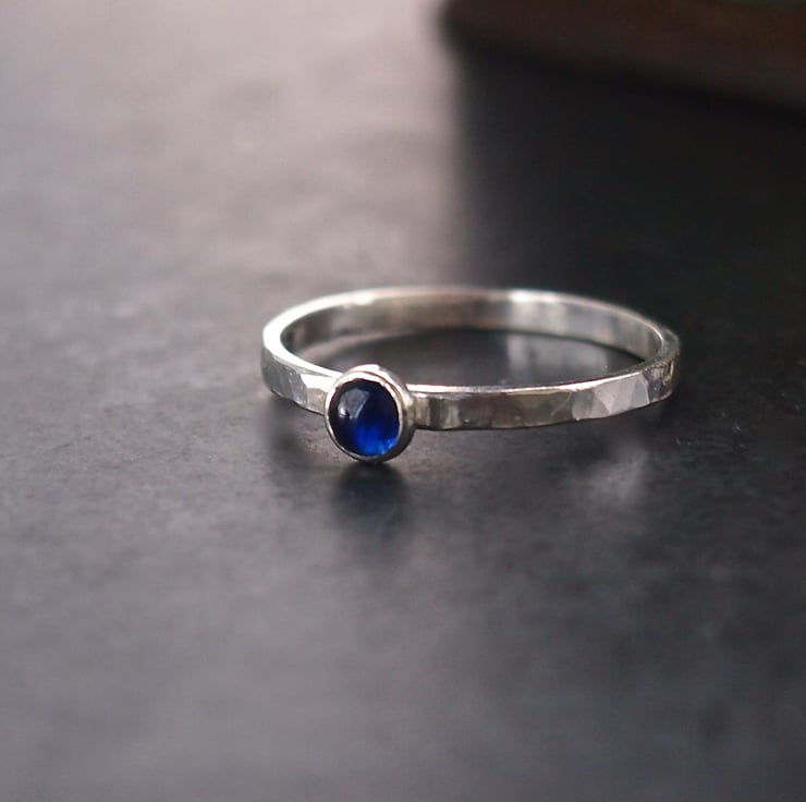 Another of our stacking textured rings - this time a wide hammered texture and with the most wonderful royal blue kyanite. Looking good alone or with others from our range this is a striking and unusual colour that contrasts beautifully with the silver. I really like it with the faceted white topaz but it's hard to choose! The band is 2mm the kyanite is 4mm.