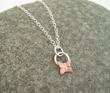 A Butterfly Necklace Copper & Silver Pendant sale Necklace, Gift, Butterfly