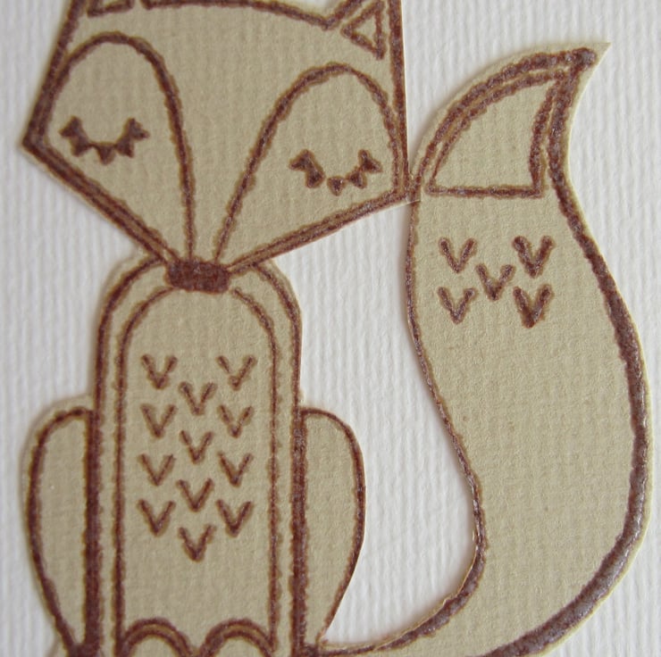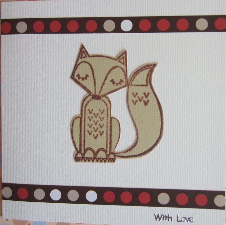 With love greetings card made with a fox stamped and embossed image on a square cream textured card. It measures 12.5 x 12.5 cm and comes with a white envelope.