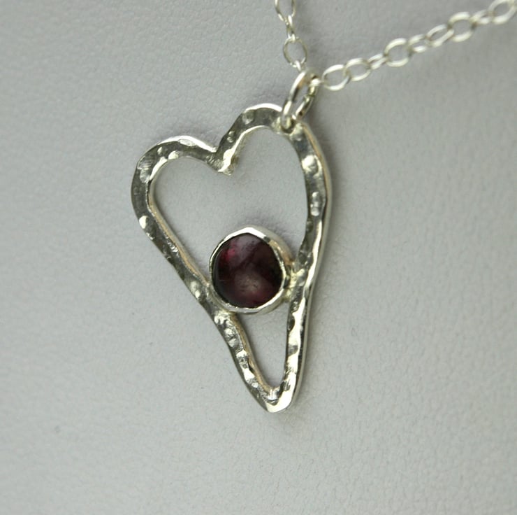 Sterling Silver Heart Pendant with Garnet Gemstone, Valentine's gift