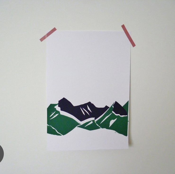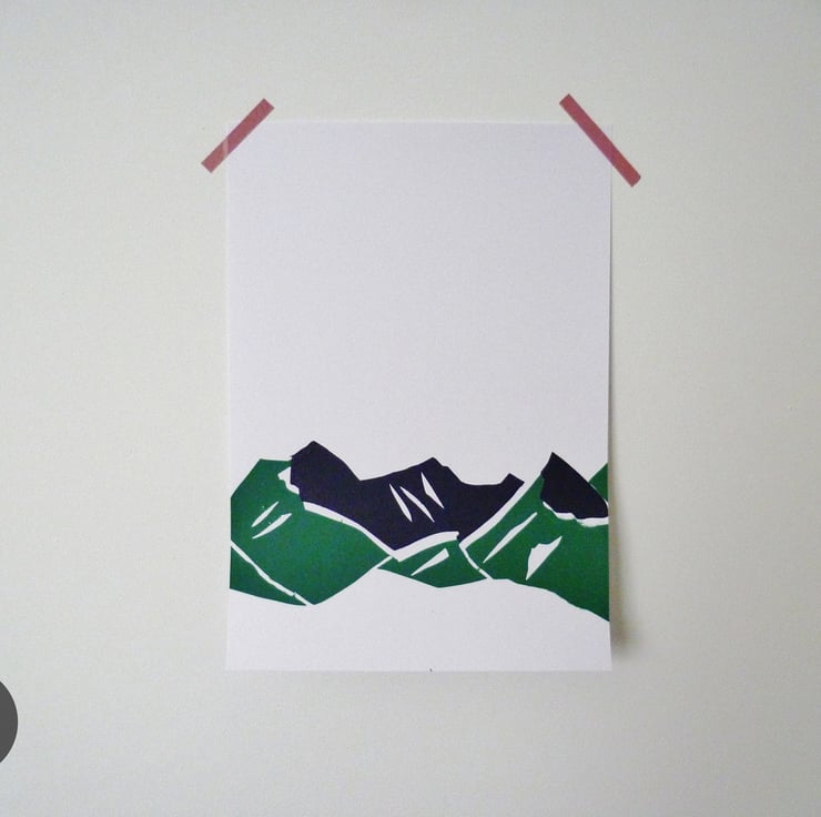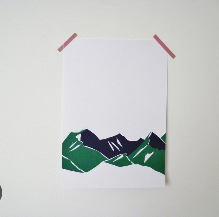 These cheap seconds are of green and purple mountain ranges. Unfortunately there were a few issues of alignment and smudging in the screen printing process, but instead of these never seeing the light of day I thought I'd sell them as cheap seconds anyway!