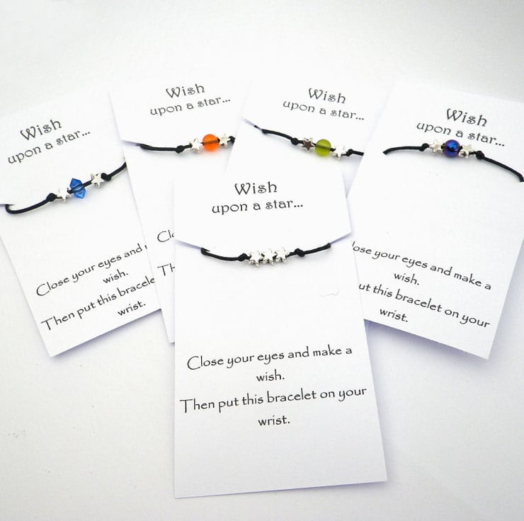 Gift a wish on a star with this wishing bracelet. This handmade wish bracelet is a simple but thoughtful gift. Perfect as a little birthday present, a thank you gift, Christmas stocking filler, stocking stuffer, or wedding/party favour.