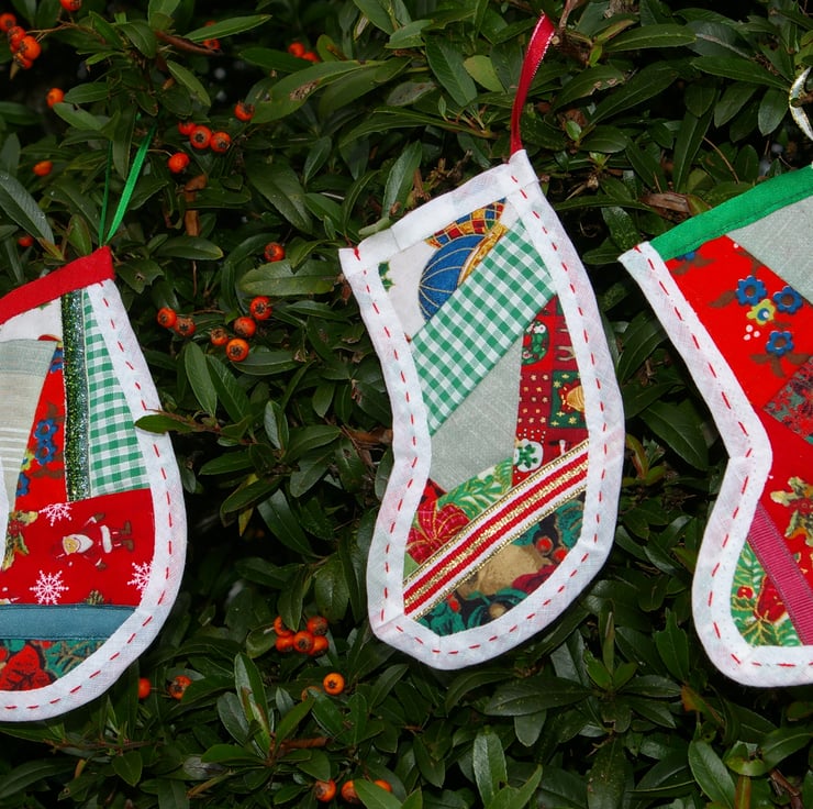 Each Christmas stocking decoration would look great on a Christmas tree or hanging on a door handle and they can hold a little gift.