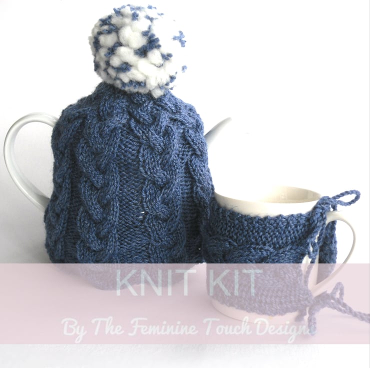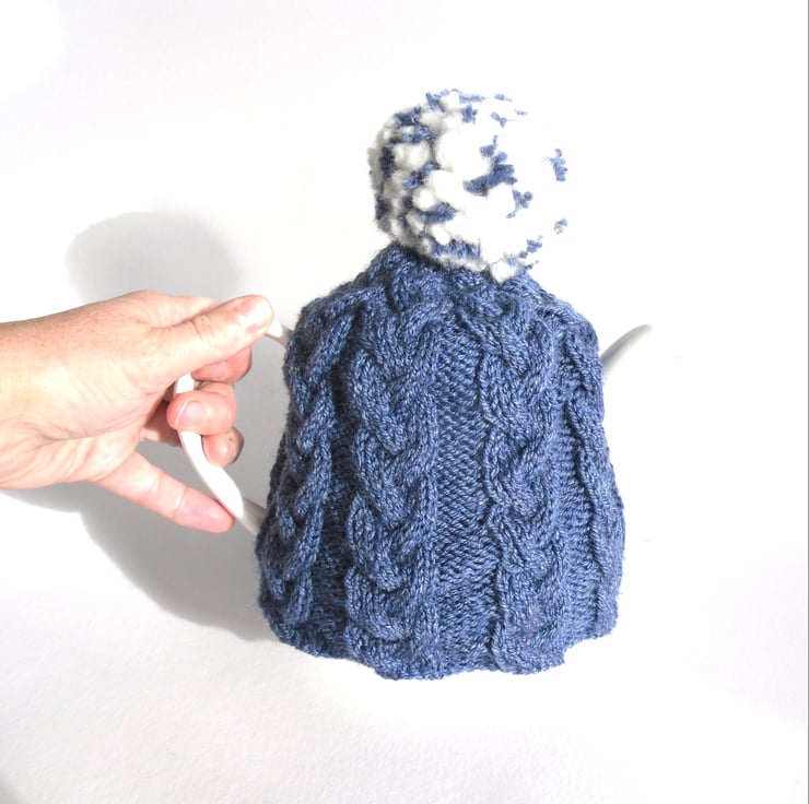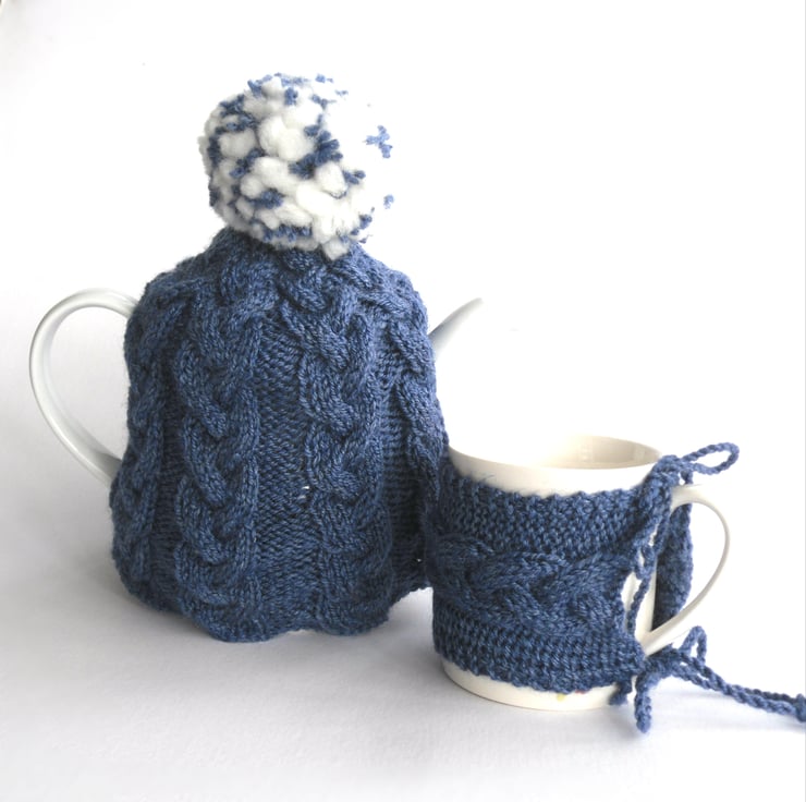 This is simple cable knit, starting with the mug cosy to set you on your cabling way and then moving on to the tea cosy when you feel more confident. The same cabling pattern is used in both cosies.