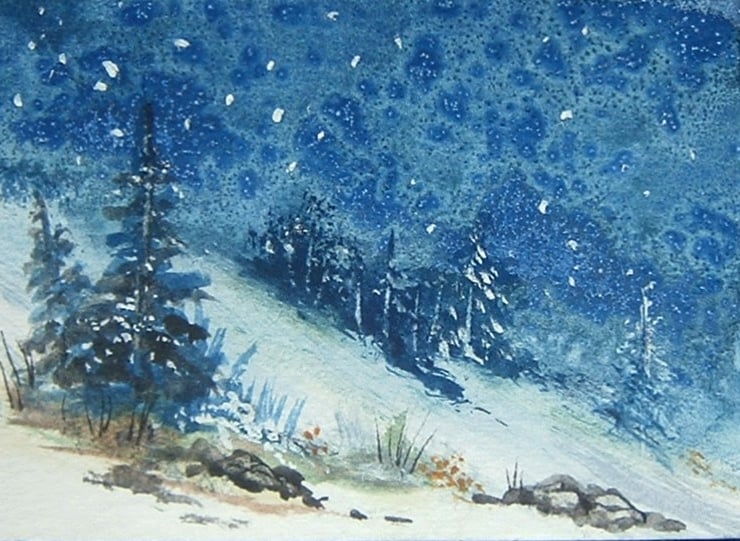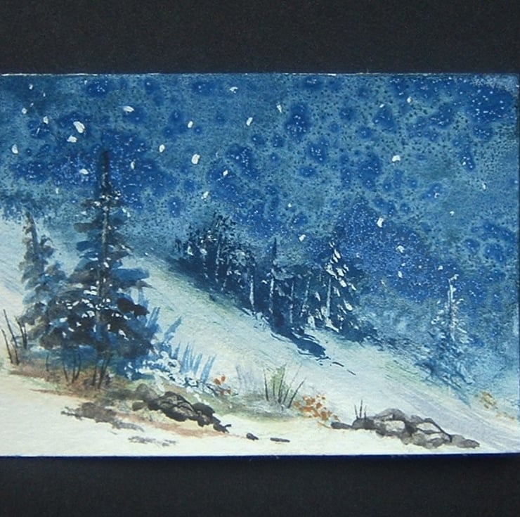 a miniature snowscene that has been created using quality materials. It will come in a clear polybag to protect it. This is an original and not a print.