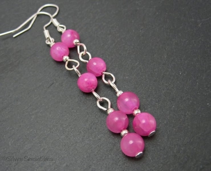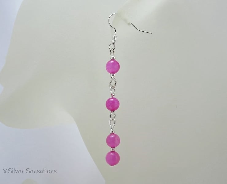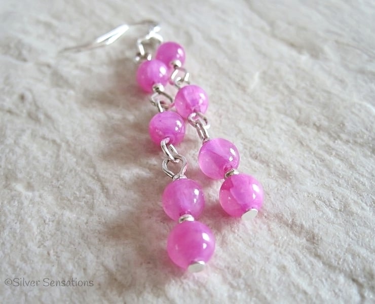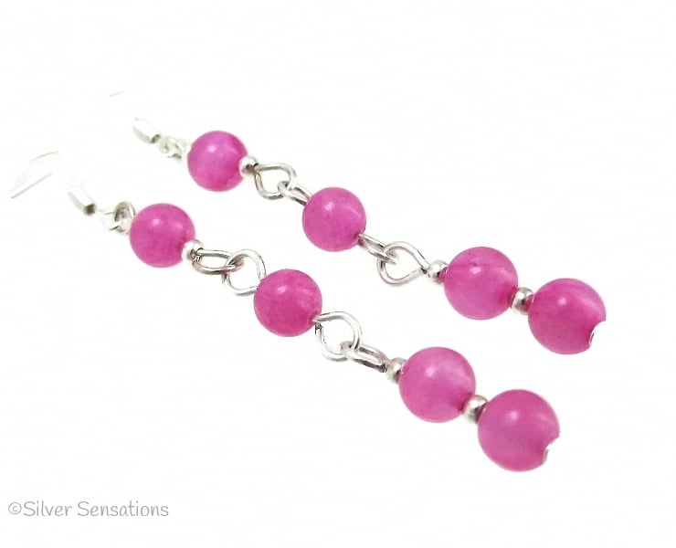 For these handmade rose pink fashion earrings I chose 6mm facete round Jade beads.