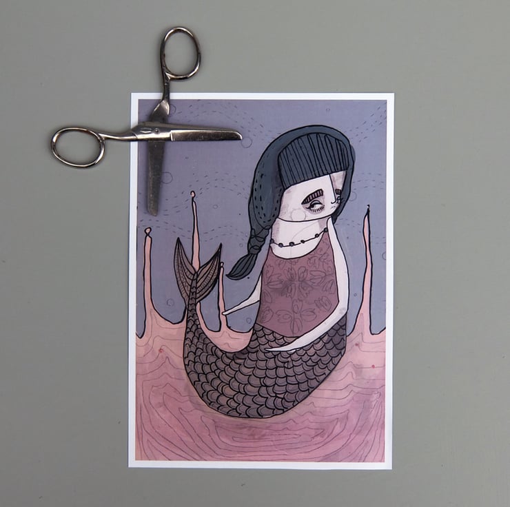 This lovely little mermaid comes in shades of pinks and purples. She's pretty but UN-conventional and perfect for those who want something a bit different for their walls.