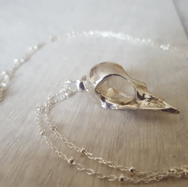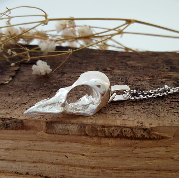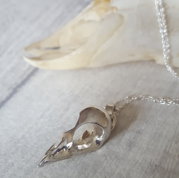 This silver skull was hand cast in sterling silver from an original swallow skull I found in the countryside.