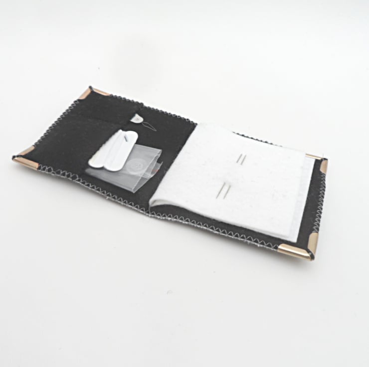 As well as the needle case this listing includes various sewing accessories, two sewing needles, a needle threader, various threads and two shirt buttons, (as shown in the photograph), making this an ideal emergency sewing kit and perfect for travelling as well as for use in the craft room. The needle case measures approximately 8cm x 8cm when closed.
