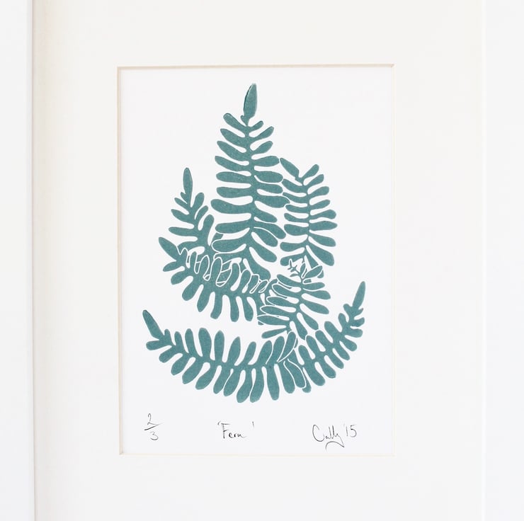 A handcarved and handprinted limited edition lino print. Only three made in this colour.