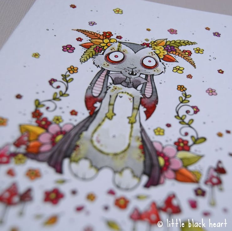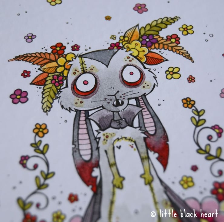 this little zombie vampire woodland bunny is ready to go trick or treating! any minute now, he'll go and find his outfit.