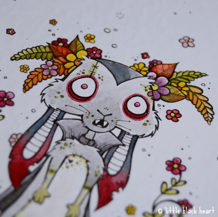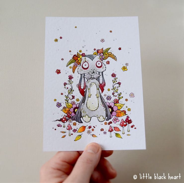 this illustration is an original artwork in artists pens and watercolour paints, on lovely white textured cardstock (300gsm). drawn in fine detail with a tiny 0.05 nibbed pen, and carefully coloured with just the tip of a tiny paintbrush.
