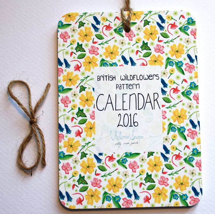 Pretty patterned and hand lettered British wildflowers 2016 calendar.