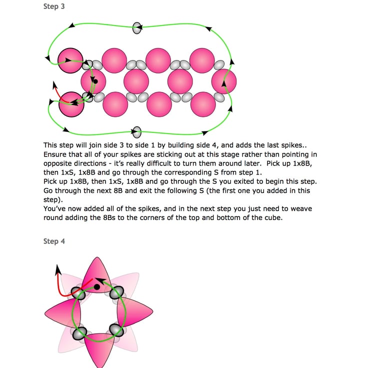 The nine page tutorial contains a full materials list, with suggestions for colour schemes, and every step is fully illustrated with a detailed diagram showing thread paths etc, as well as being written out clearly.