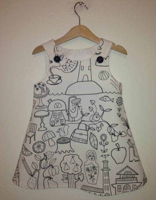 Colour your own frock pinafore dresses. Handmade pinafore dress in a soft canvas fabric with 6 fabric pens to add a spot of colour to your dress.