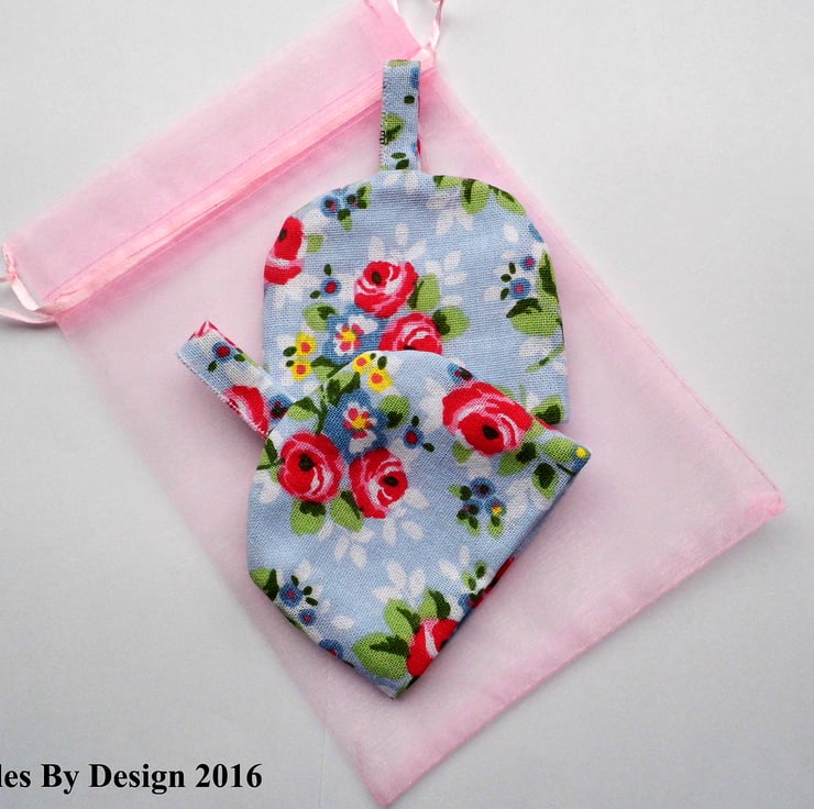 They are hand cut from a floral cotton and inside are lined with a crisp white cotton.