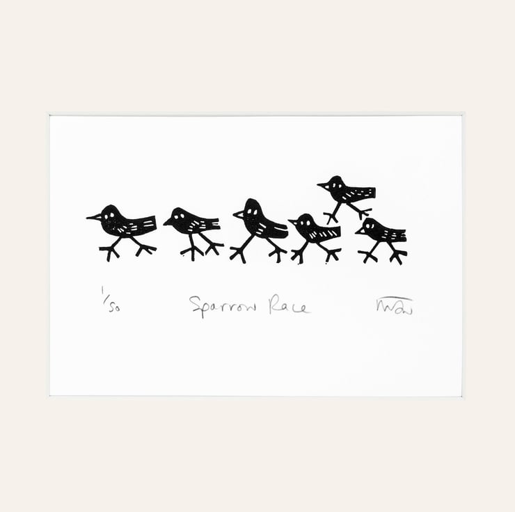 The image size is 12 cm wide by 3.5 cm high and the listing is for an unframed lino print, which will arrive wrapped in cellophane and backed with card, ready to give as a gift or to pop into a frame.