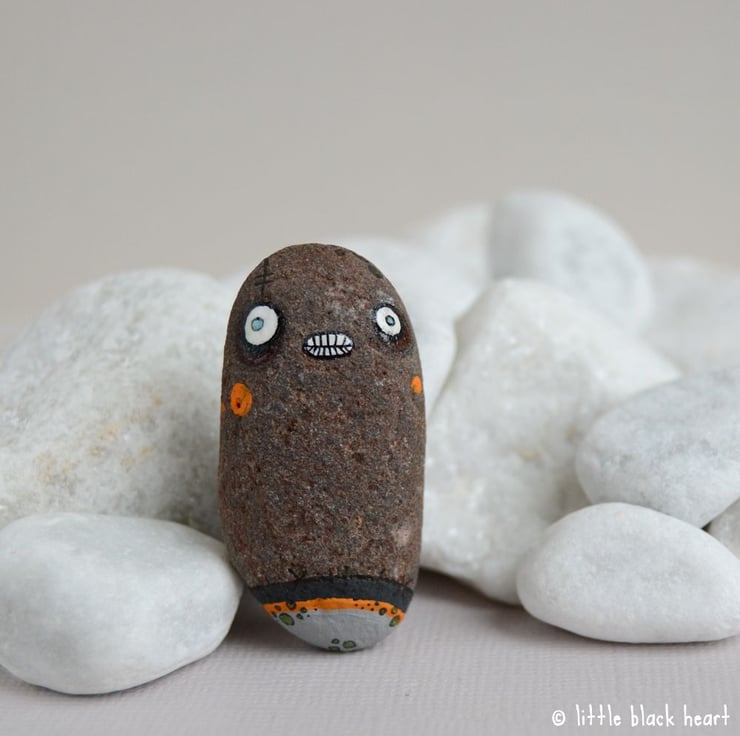 this original little collectable artwork is handpainted by myself. it is not varnished or sealed as i did not want to change the original colour and feel of the pebble, so please take care not to handle too much, or those delicate little features might rub off.