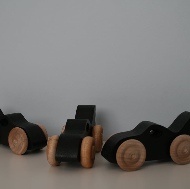 The Car is made from MDF and Spray Painted, then lacquered to give years of play.