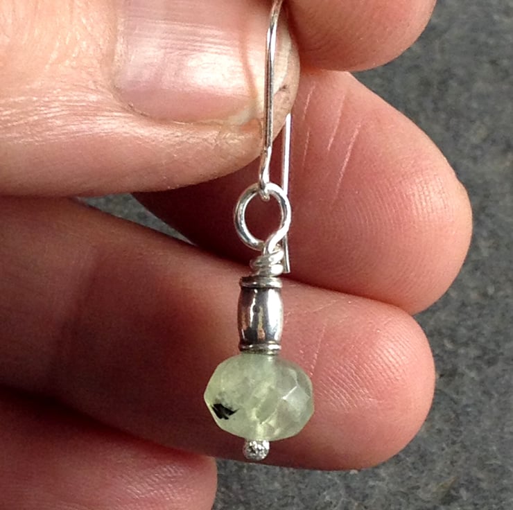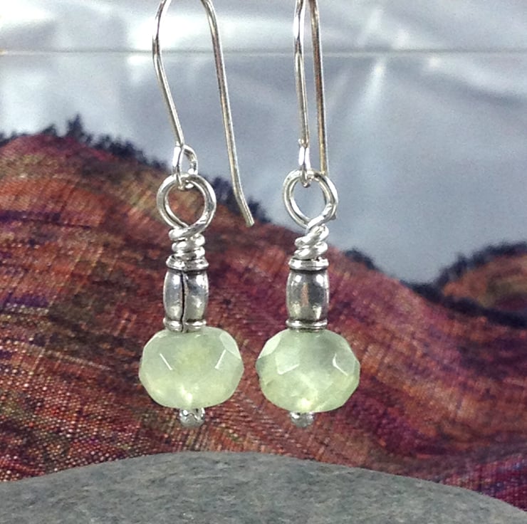Faceted prehnite rondells have been teamed with brightly polished silver to make these simple earrings.
