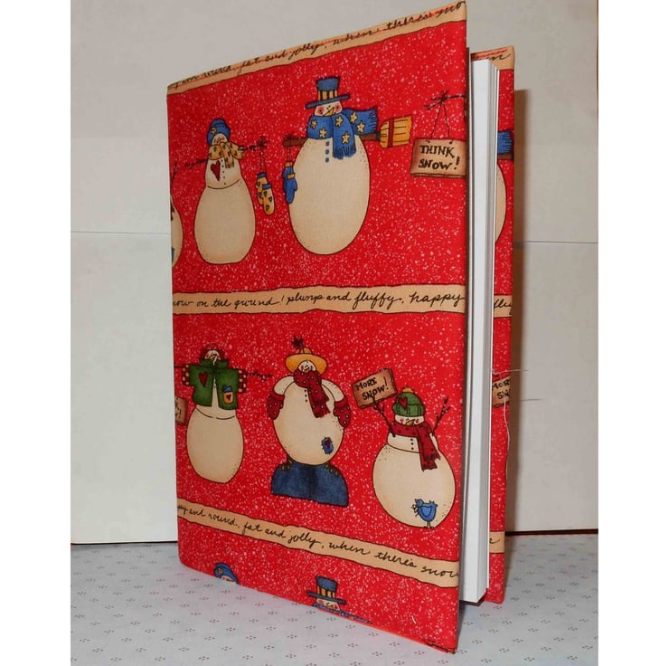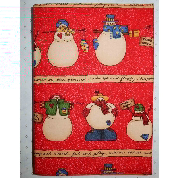 This is a new idea, a journal/ planner or notebook for all your Christmas lists, recipes, notes, meal plans etc. It is an A5 notebook with good quality lined paper, which is covered in fun red snowmen fabric.. It is interfaced and lined in plain fabric, the cover can be removed, and a replacement notebook fitted when needed.