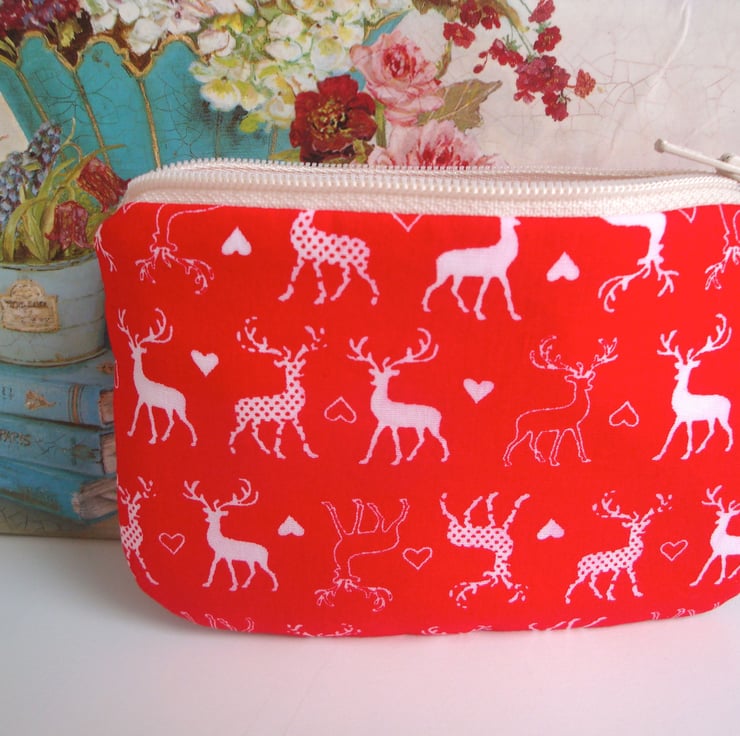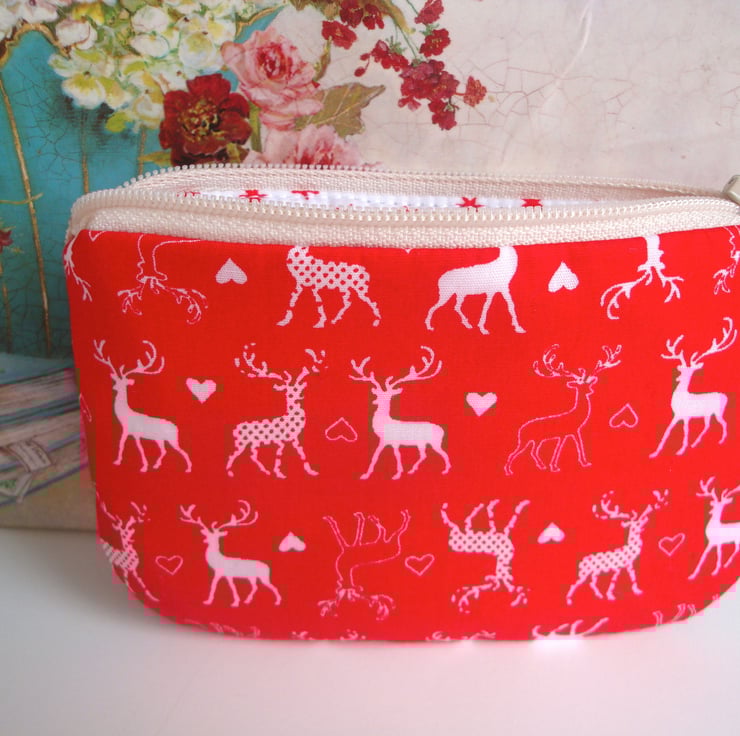 A lovely handmade Christmas zipper coin purse - which can also be used as a mini make up bag - or gift bag .