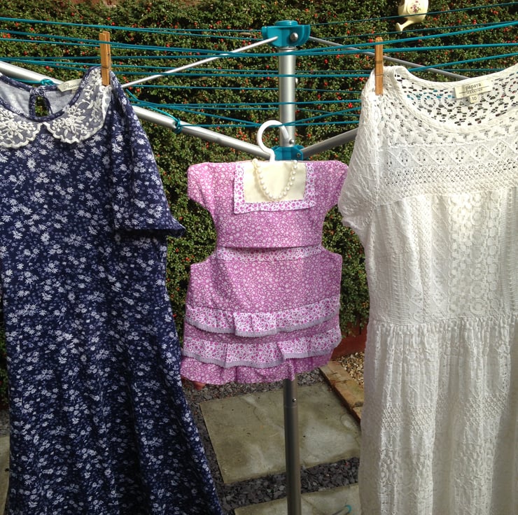 Bring some panache to your hum drum washing days with this beautiful dress style peg bag. It will be the talk of all your neighbours as it sways prettily from your washing line.