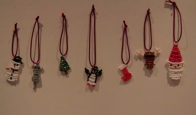T'was the night before Christmas and all through the house nothing was stirring, not even a mouse... This little seed beaded grey mouse has a cute pink nose and dark red cord to hang him from your Christmas tree.
