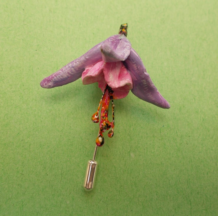 You are looking at a variation of one, of my more unusual Designs----The Pastel Pink & Mauve FUCHSIA STICK PIN...... Lapel Flower Brooch.