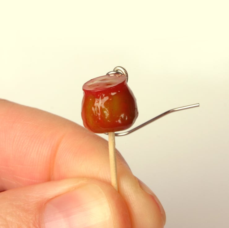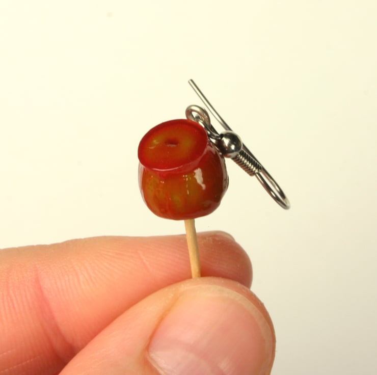 Here in the UK we associate toffee apples with Guy Fawkes night, although elsewhere they are generally associated with the autumnal and winter season - Halloween, Christmas, bonfire night. If you enjoy this sticky, crunchy, healthy (honest!) sweet you may enjoy wearing these handmade miniature toffee apple earrings.