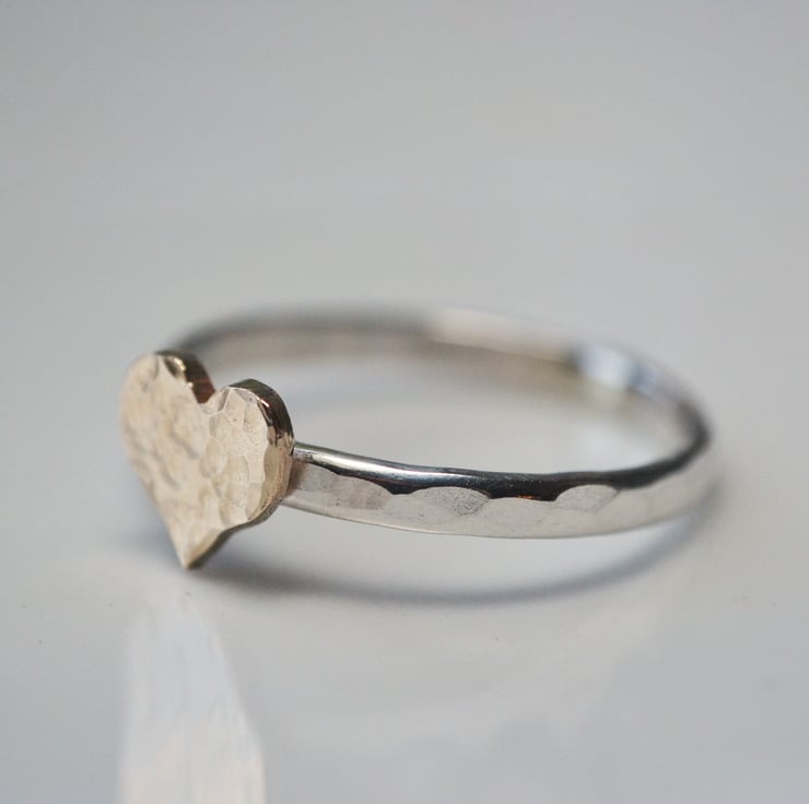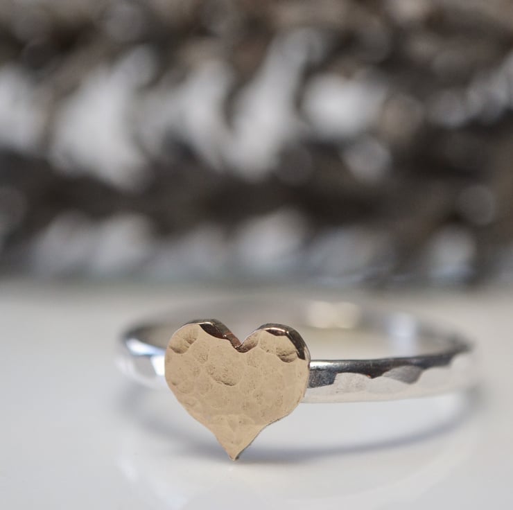 A sterling silver band (2.3mm) holds a handcut 9ct gold heart.