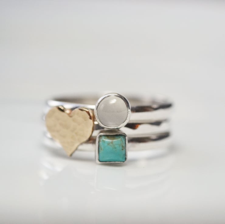 I wanted to add a gold heart ring to my collection of stackable rings, as it's perfect between two birthstones - a perfect anniversary gift - a heart with the couples birthstones on either side.