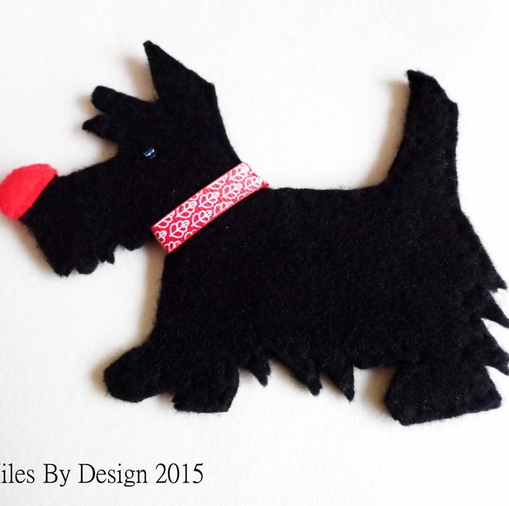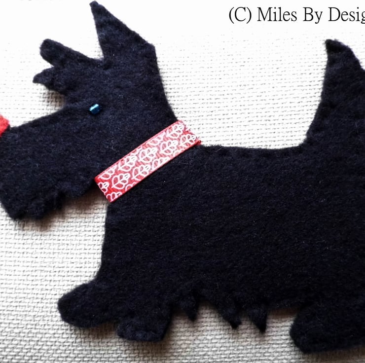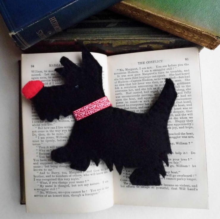 What a cute gift idea for the avid reader in your life or to keep for yourself, this black felt scottie dog with his large red nose will be happily awaiting your return amongst the pages of your book.