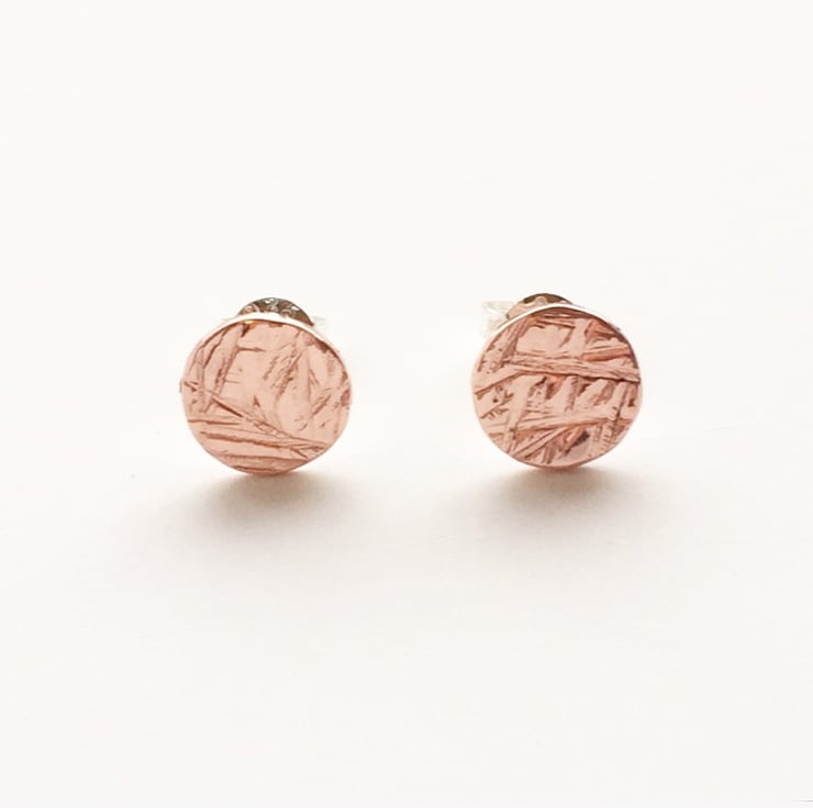 A B O U T : Textured circle flat stud earrings. Has a hammered detail to resemble a meadow.