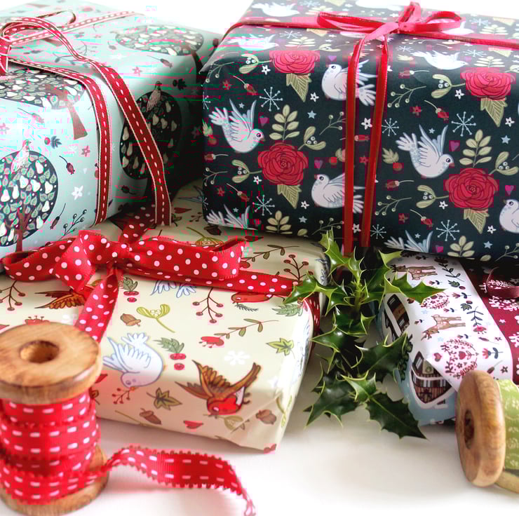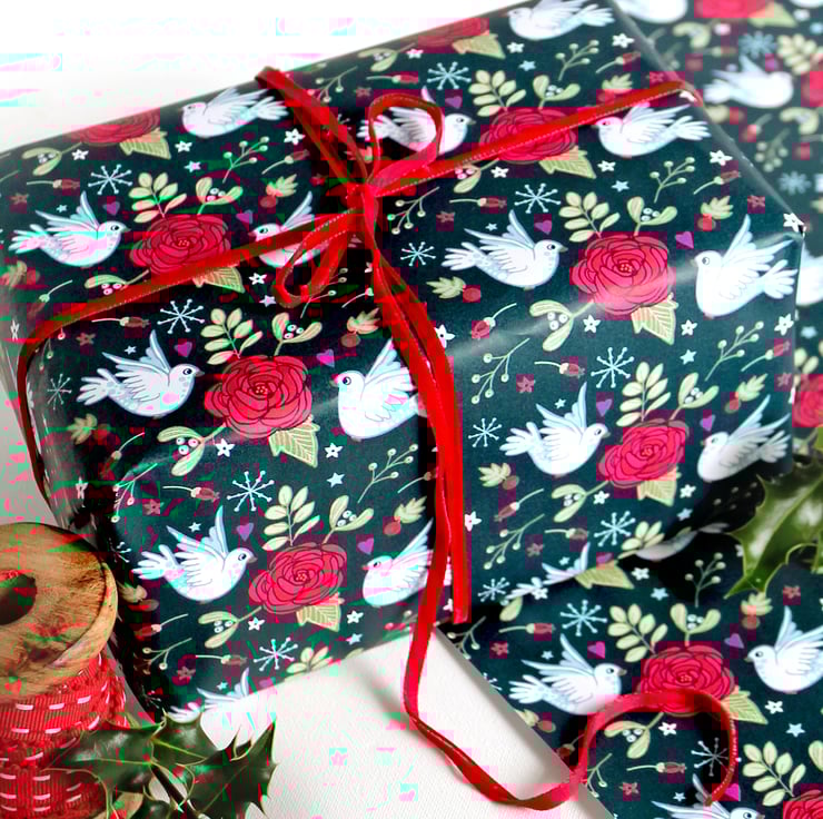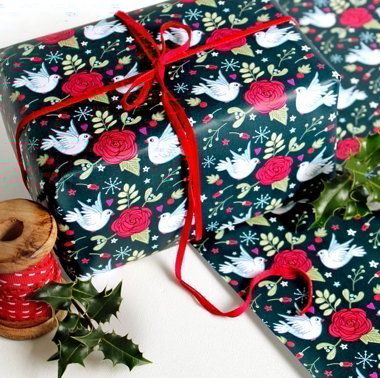 Pack of 2 x A2 (594 x 420mm) sized sheets of Christmas gift wrap in 1 design: