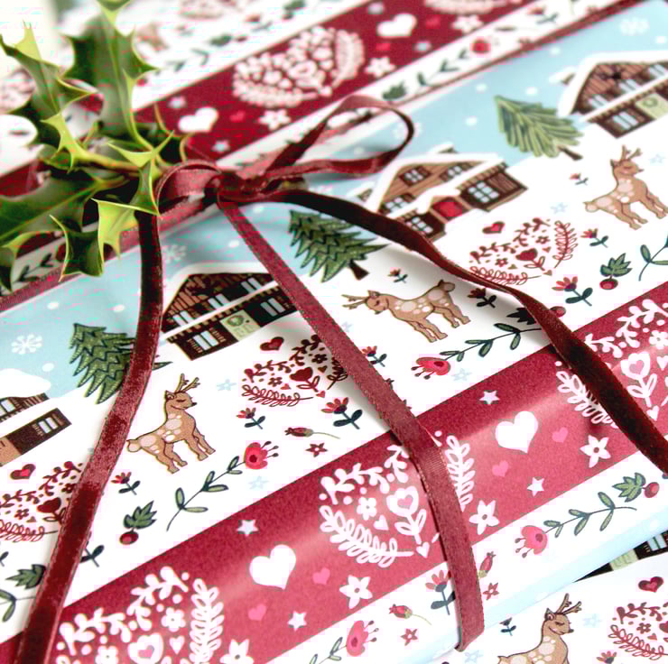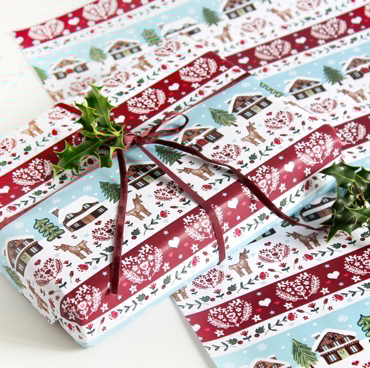Christmas Gift Wrap Single Sheet - Christmas Lodges In the Snow