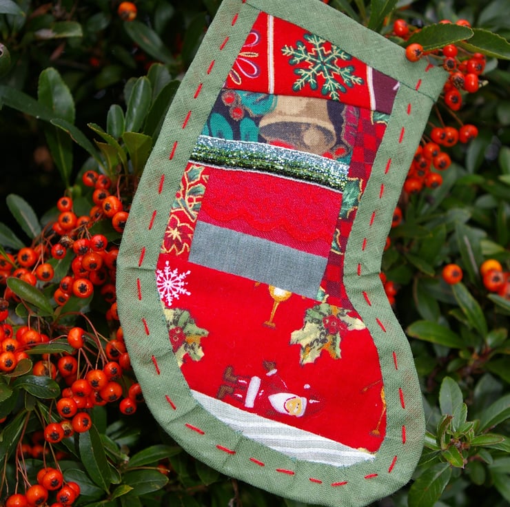 I have always loved Christmas stockings they remind me of when I was a child hanging them around the house and on the Christmas tree. I remember the thrill of finding tiny gifts in each tiny Christmas stocking. I have always enjoyed creating patchwork so this year I thought it would be nice to start a collection of patchwork Christmas stocking decorations.