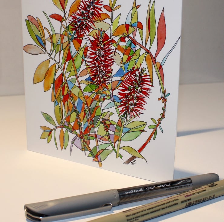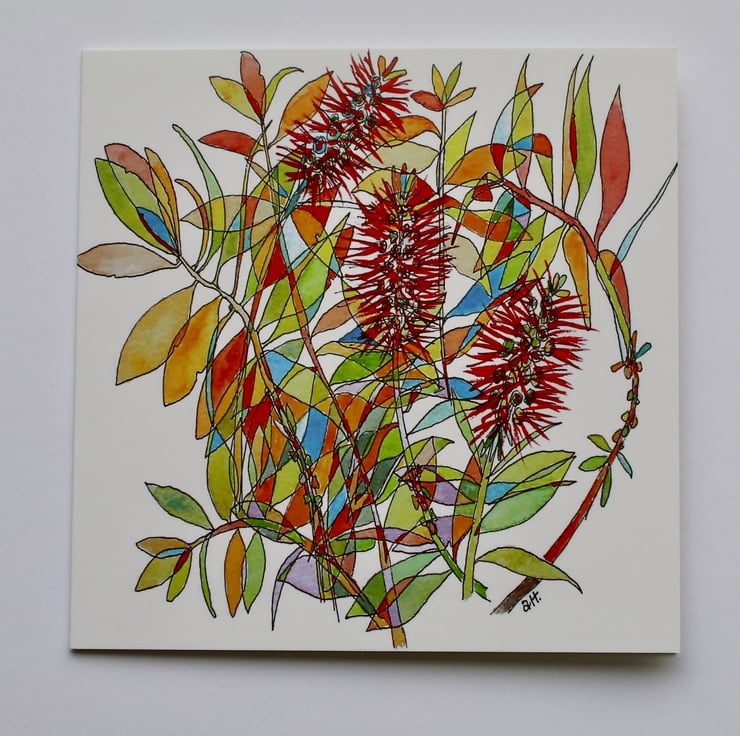 This colourful design is a reproduction of a pen and watercolour sketch that I produced on holiday in Crete. Packed with colour it's a real celebration of this striking plant. The card is printed in the UK on high quality board from recycled and well controlled sources. Each A6 card comes packed in a cello bag with a pristine white envelope all ready for you to send off to someone to brighten their day!